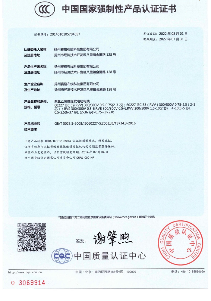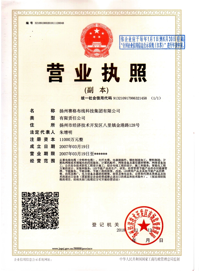 "Seg group" is located in beautiful yangzhou, which is awarded as the best living place in the world. The company covers an area of 106,800 square meters, with fixed assets of 200 million yuan and nearly 1,000 employees, among which more than 100 are professional and technical personnel. Company has all kinds of advanced integrated wiring products and cable manufacture and experimental testing equipment, products strictly in accordance with national standards or industry standards organization production, and has obtained CCC certificates issued by the national quality certification center CQC Noah inspection certification group co., LTD. And Shanghai awarded ISO9001:2015 certificate, thayer certification center awarded "thayer certification" and so on!